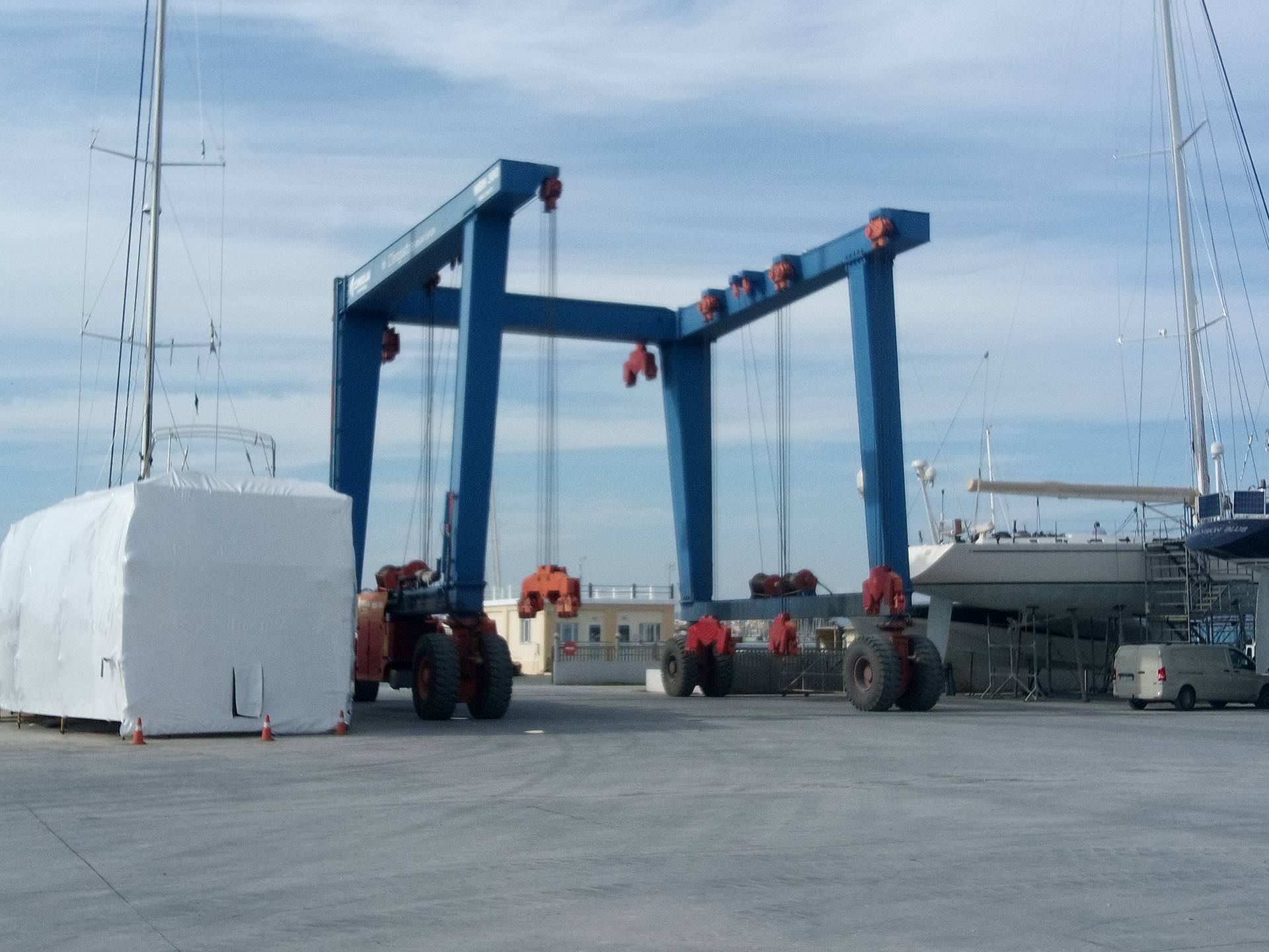 Ο σχεδιασμός έγινε με χρήση ευέλικτων στην εφαρμογή μέτρων βελτίωσης εδάφους ώστε, πλην της ασφαλής αποθήκευσης σκαφών μεγάλου μεγέθους, να μπορεί να διέλθει με ασφάλεια αυτοκινούμενο τροχοφόρο γερανοφόρο όχημα μεταφοράς σκαφών βάρους >500tn.